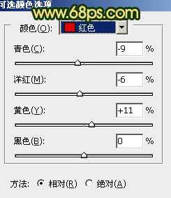 2、创建可选颜色调整图层,对红,黄,白,中性色进行调整,参数设置如图3 - 6,效果如图7。