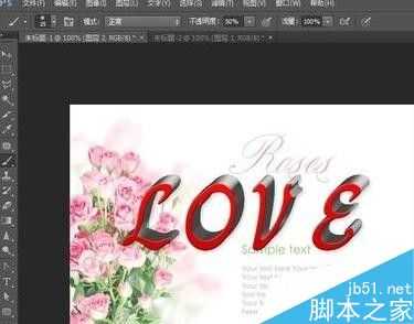 1、首先打开ps,新建文档,然后编辑文字“love”,如图所示