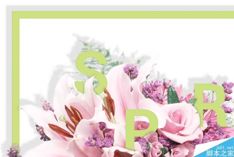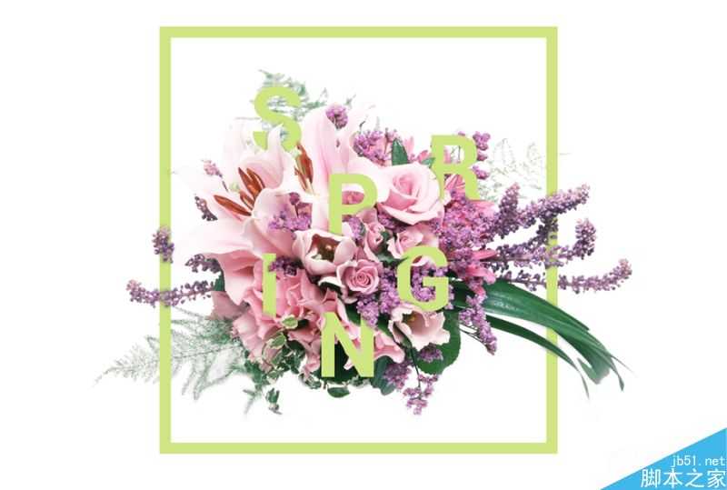 字体的颜色我选用的是一种略带黄色的绿色,我的建议就是字体一定要和花朵区别开来,因此大胆运用对比色的做法也未尝不可。也刚好契合我写的英文"spring"的主题。