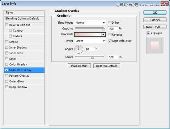 双击黑色圆形图层,添加渐变效果,左边颜色为#eac3c3,过渡到右边颜色#ffffff。