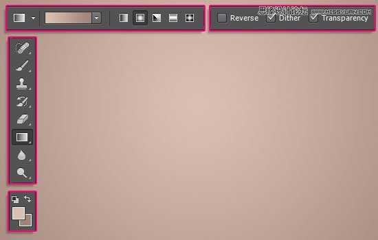 新建 1250 x 1250 px 的文件,前景色为#dbbfb,背景色为#9d8579,选择渐变工具,选择径向渐变,拉出如下背景。