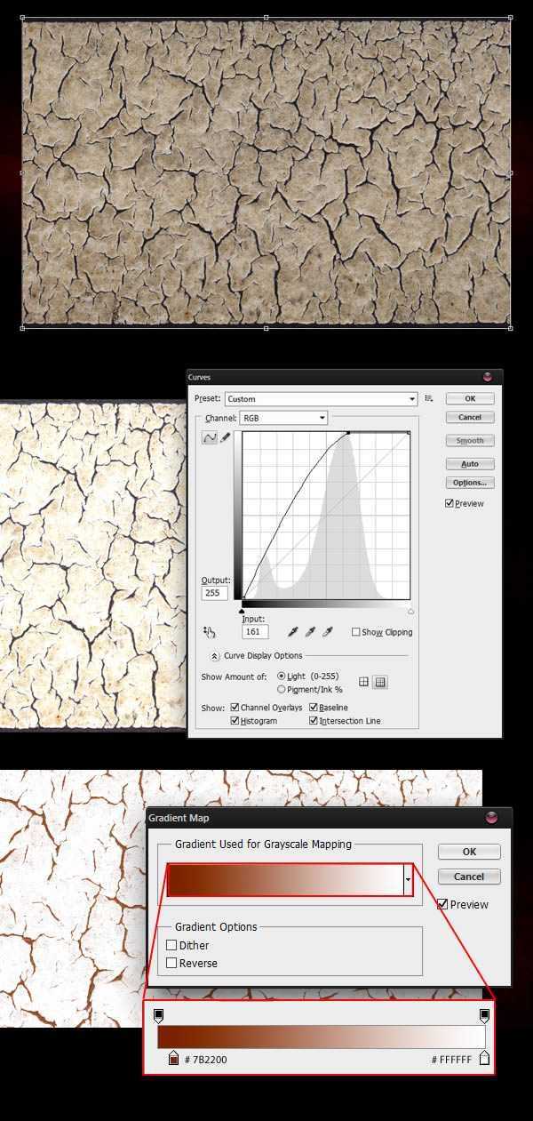 我们的文本需要更多的纹理效果。下载并打开素材ConcreteBare0280_24,我们需要复制这个纹理覆盖在我们文本之上,然后调出曲线,将图片提亮。