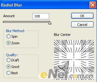 5、在选择菜单中的“滤镜>模糊>径向模糊“将数值拉到最大,其他选项不变。