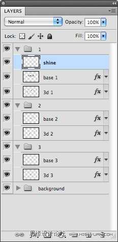 27、在组“1”中新建一个图层,命名为“shine”。我们的图层结构应该如下。