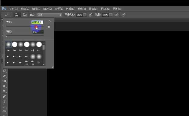 ②创建一个新的图层,选择画笔工具中的柔边画笔(首位第一个),将硬度调为0%,大小设置为280。