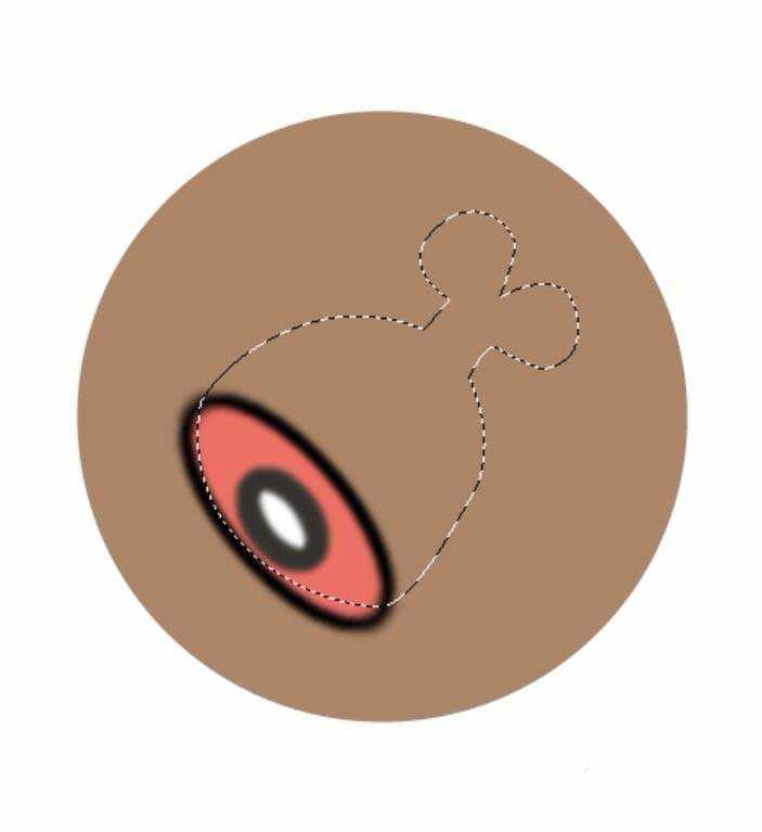 2、继续新建设一个图层,我们画出一个大的椭圆作为肉骨头的表面的层次结构,这个椭圆填充一个红色并进行一个黑色的描边。