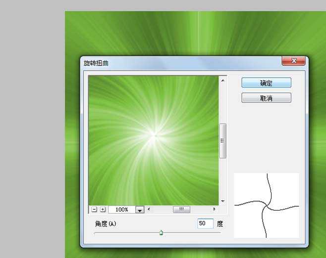 7、执行滤镜-扭曲-旋转扭曲命令,设置角度为50,执行ctrl+j组合键复制一层,执行编辑-变换-水平翻转命令,修改该图层的混合模式为滤色。
