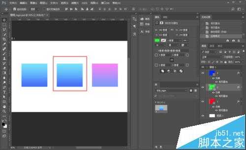 2、分别给三个矩形加上不同颜色的渐变叠加;