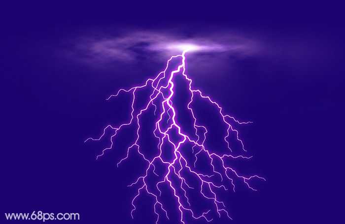 闪电壁纸包括两个大的部分:云彩和闪电;云彩部分直接用PS自带的云彩滤镜制作,并控制好范围及局部渲染好高光;闪电部分直接使用闪电笔刷,增加一点发光样式即可。