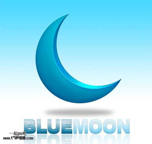 1、首先打开老外提供的初始PSD文件,解压后我们可以看到,名为BASIC的组里有3个矢量层,Moon1,MOON,和BLUE。(如果没有PSD文件,可以按住下图所示效果自己用PS做出来)