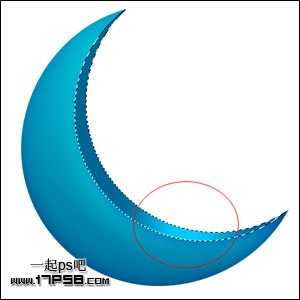 7、调出Moon1选区,按住crtl+alt键点击副本图层,我们会得到一个月牙选区,用白色柔角笔刷在红框内的位置涂抹,类似下图效果。