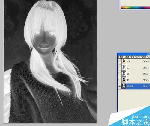 3、CTRL+I 反相,将我们需要抠出来的头发变成白色区域。