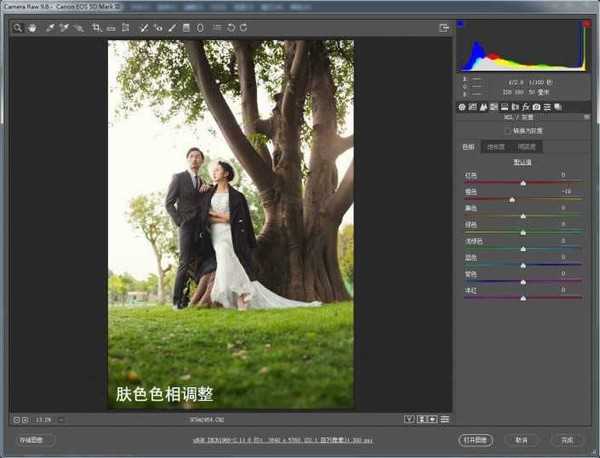 整体有点灰,曝光不错很准确,后面右侧大树旁有明显的逆光呈现,但是人物左边也有少许光线,需要调整的区域有: