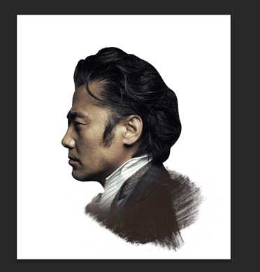 2. 然后我们要新建一个图层,然后在脖子的部位加几个墨迹笔刷避免有种头被斩下来的感觉,稍微用橡皮修整一下笔刷,然后Ctrl+E合并笔刷和头