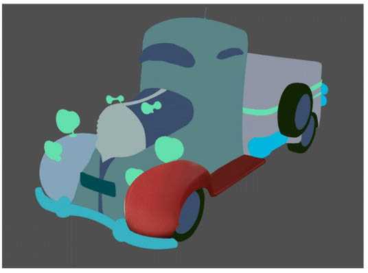 像这种复杂的形体制作,一般思路就是将所有部件分别绘制出剪影,然后在每个剪影上绘制光影的关系。逐步塑造形体。这里只讲思路。最终效果1、制作思路:图的面块分析。每一个颜色代表一个部件。2、画笔预设:关于画笔:一种边缘清楚的有压力的圆头笔,一种边缘模糊的画笔。如果你没有数位板,只用边缘模糊画笔即可。 3、特写举例:以红色部分为例,先添一个固有色,根据光影关系,逐步细化。边缘模糊画笔和边缘清晰画笔根据需要配合使用。 4、整体步骤:注意在每个形状的选区内绘制,这样不会互相影响。