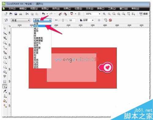5、透明度操作——默认为正常。点击点击小三角,弹出下拉菜单(透明度操作有很多种)——如果选添加。(其它的可以自己试试!)如图