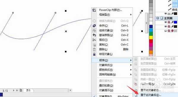 6、选择这些线段,点右键-->排列-->置于此对象后面。之后点击曲线。