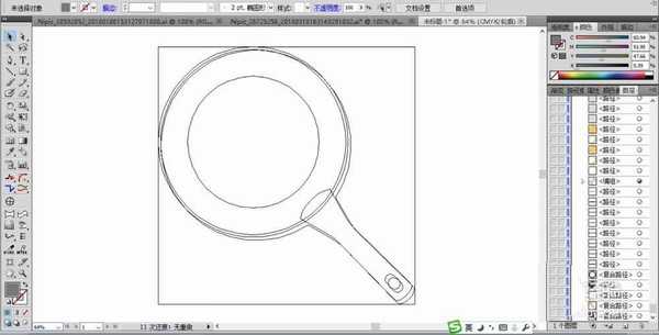 3、在煎锅的上方,画出不规则形状的煎蛋,还有右下侧的一根香肠的路径。再用矩形组合与圆形做出复合路径的效果。