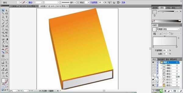 2、继续绘制出黄页的左侧面与右侧面,我们用较深的褐色的渐变填充。