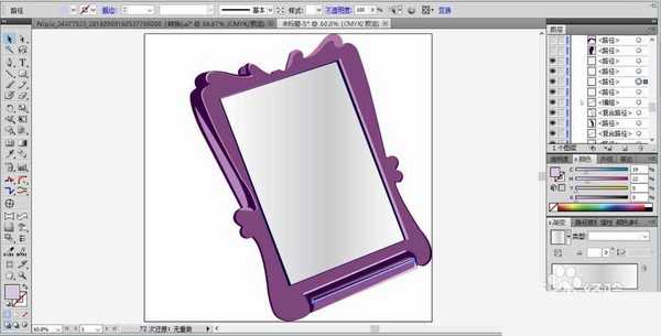 7、用同样的办法绘制出化妆镜的左侧支撑架的路径并填充紫红色,做好表面的色调细节之后,化妆镜图片设计完成。