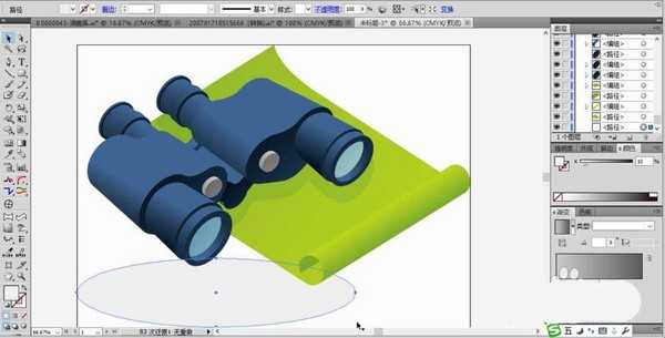 7、最后,我们绘制出整个望远镜的阴影,并用灰白色的渐变填充一下,望远镜图片设计完成。