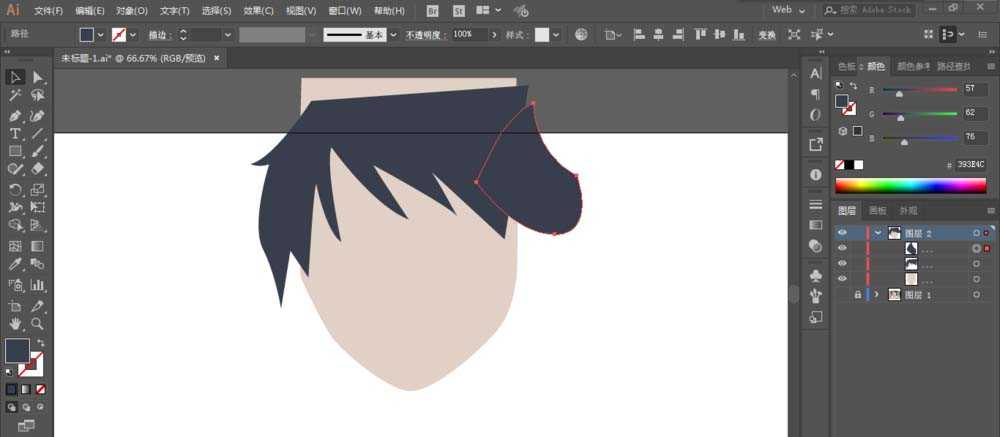 2、钢笔工具绘制头发部分。