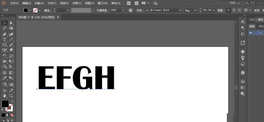 2、文字工具填写英文字母,调整一下大小和字体。