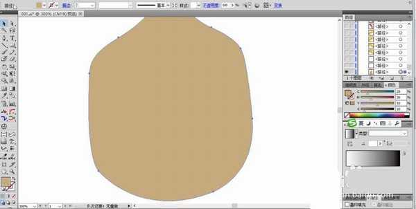1、用钢笔画出脸谱的不规则脸蛋的轮廓,我们填充为灰褐色。