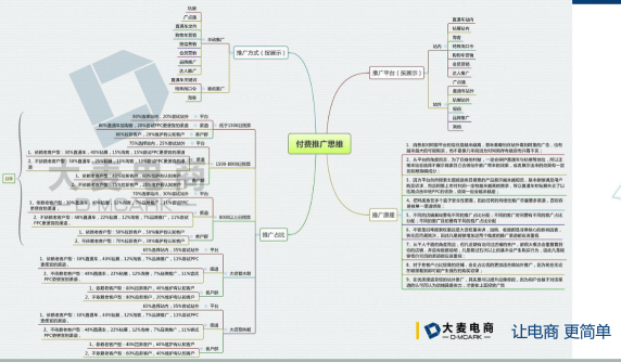 第一,全渠道推广;第二,推广花费比例,上图展现的非常清楚,比如推广花费在1500元怎么推广,8000元又是怎么推广,不同价位的推广方式各不相同。