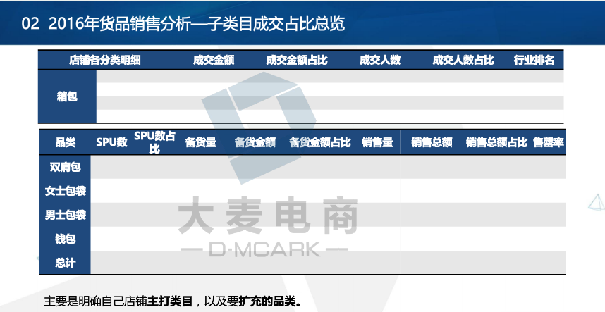 3)结合16年分析,做货品调整,优势类目继续保持,要突破瓶颈,需要开拓新类目。