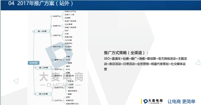 SEO+直通车+钻展+硬广+淘客+聚划算+官方其他活动+主题活动+类目活动+日常活动+会员营销+明星代言策划+社交媒体运营。