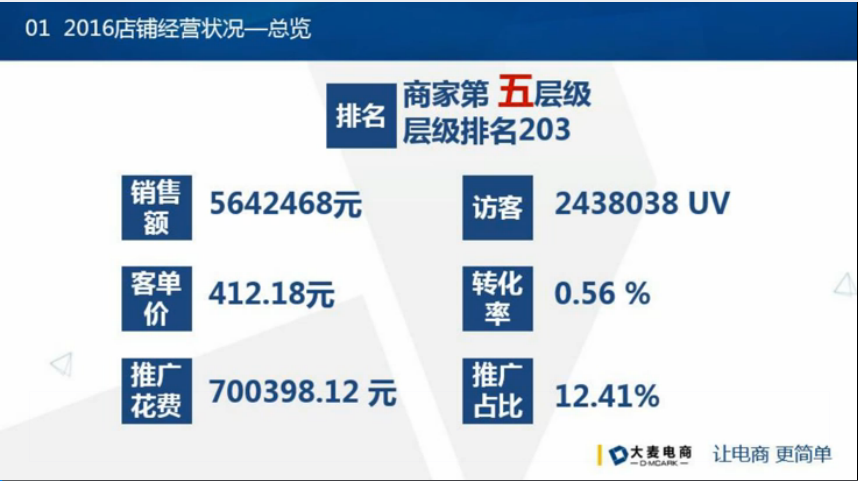 商家们在年底进行店铺总结时,可以依据上图,做出自己的店铺分析表格,通过分析能看出以下几点:1)店铺整体增幅是否健康合理,正常来说,店铺每年增幅在20%左右是比较健康的;花费占比是否异常,假设2015年店铺推广占比在7%~9%左右,2016年的推广占比是为20%,这就是明显的不合理;客单和转化增长的原因。