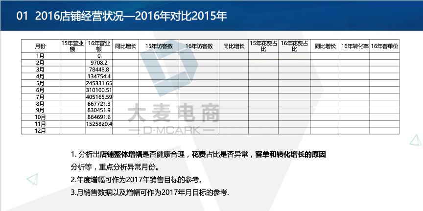 2)年度增幅可作为2017年销售目标的参考;3)月销售数据以及增幅可作为2017年月目标的参考。